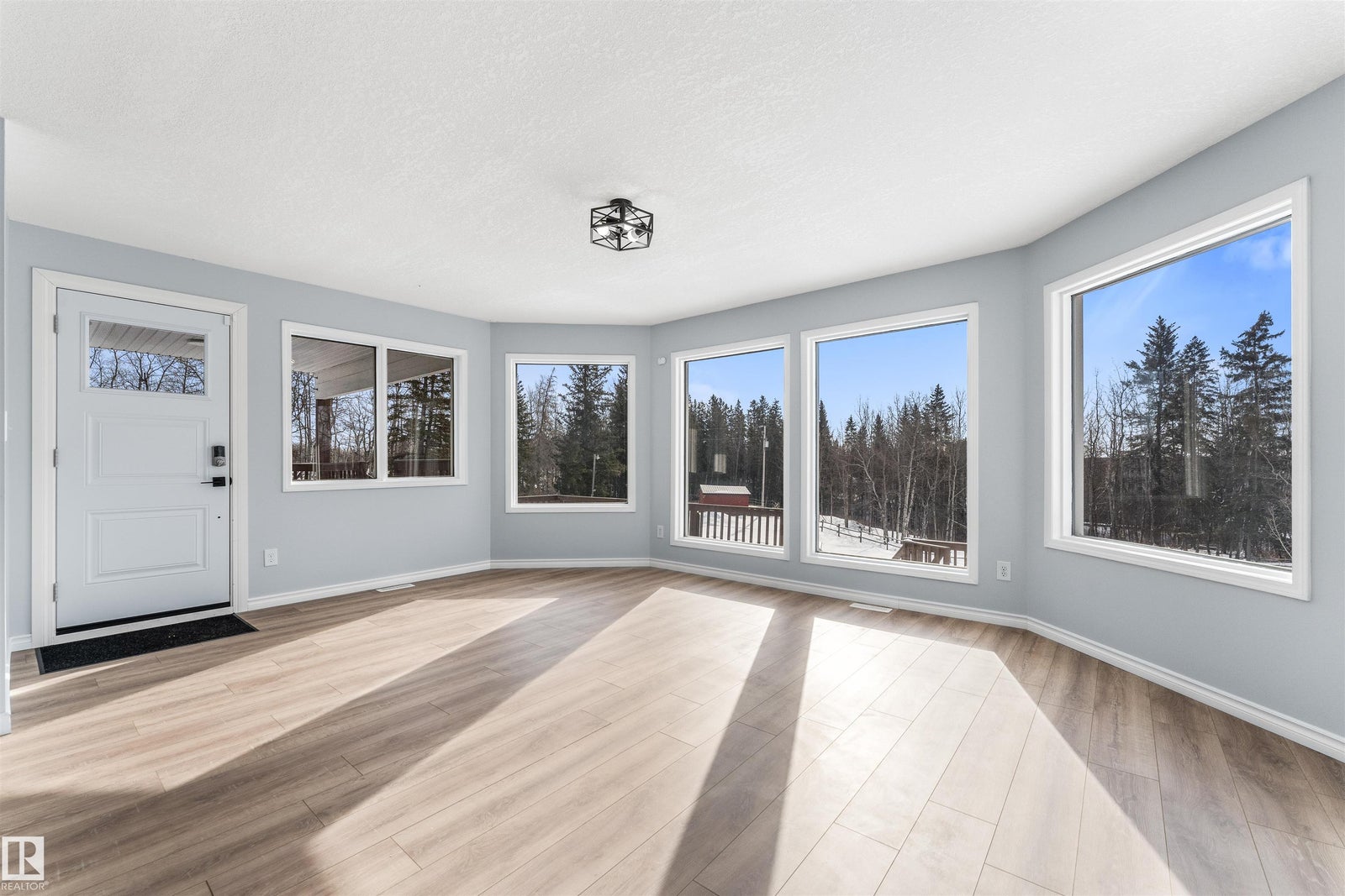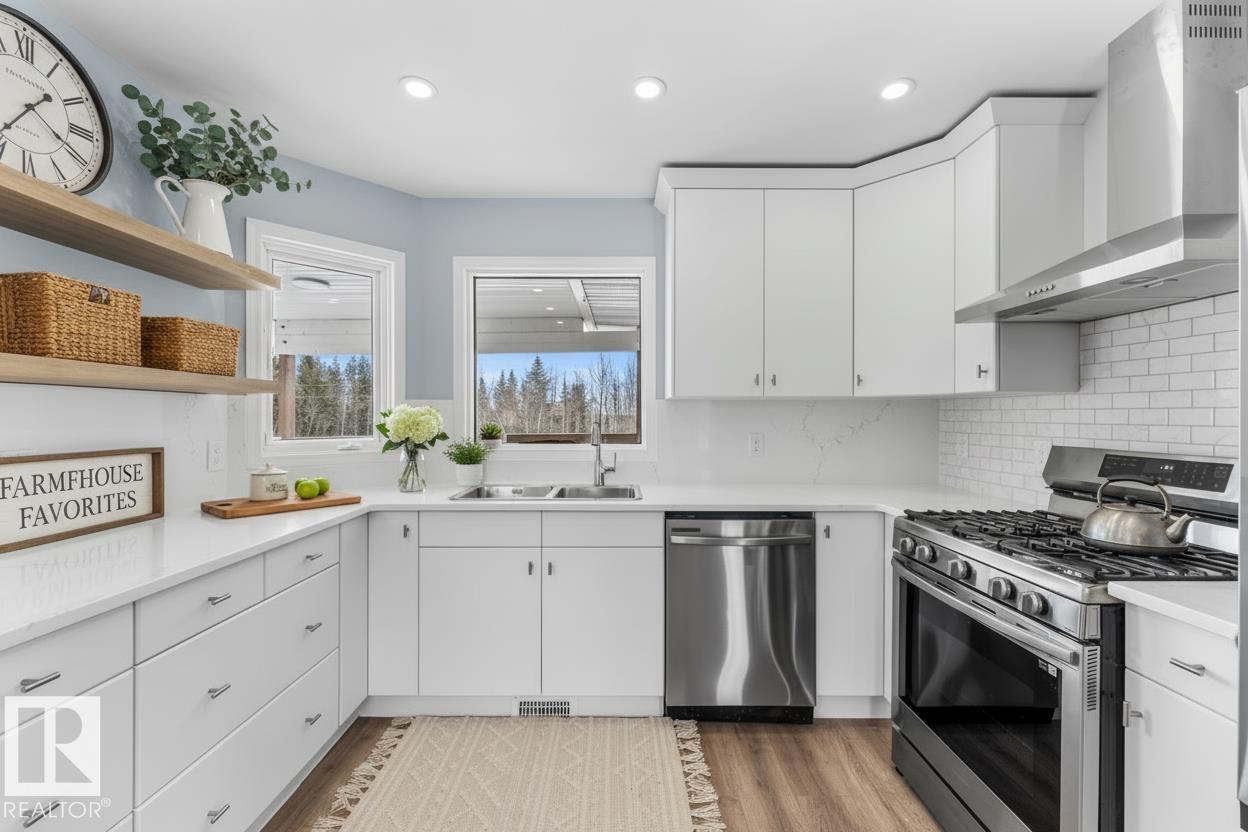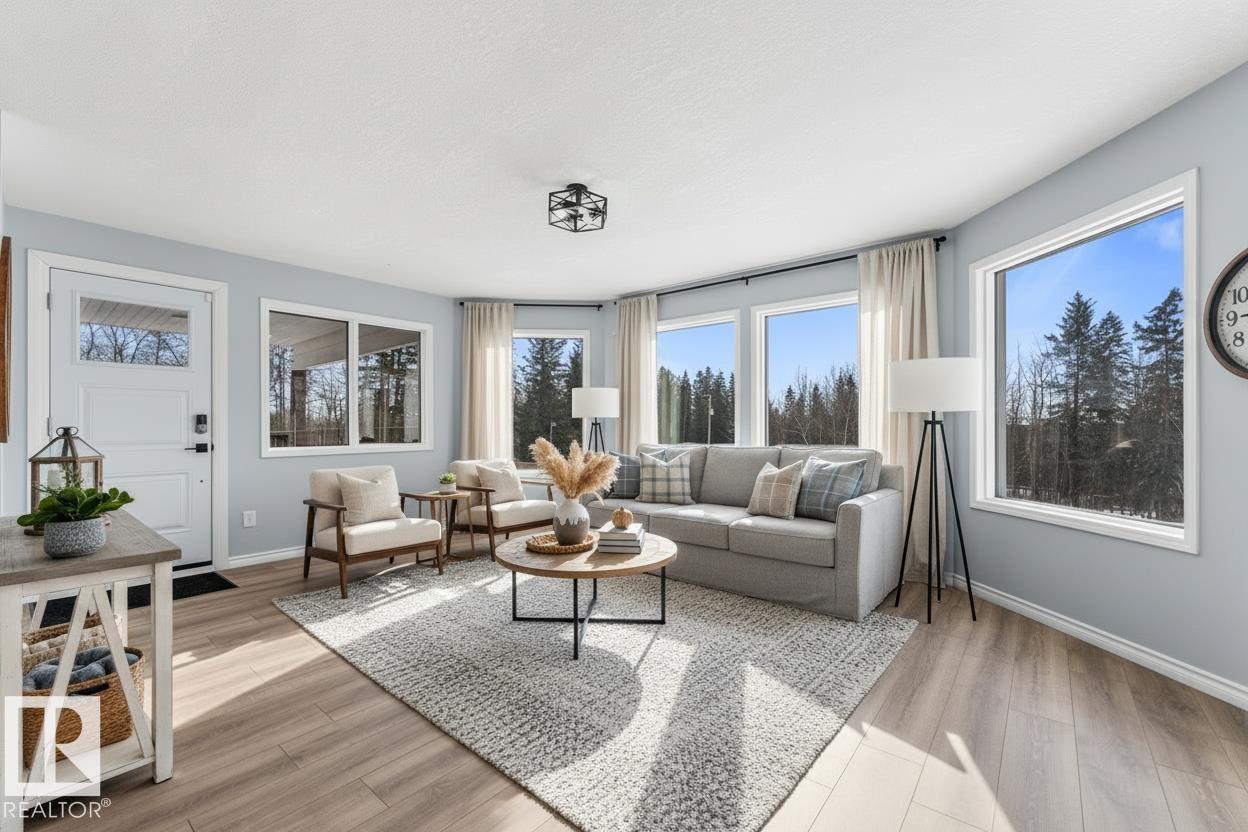 If you want peace and quiet? Enjoy nature on this 9.99 acre parcel just 20 minutes from Stony Plain. Nicely upgraded thru-out is this two storey walk out basement. Brand new kitchen cabinets, and back splash, freshly painted thru-out, new carpets, newer septic and filtration system, All new appliances, central vacuum system, Covered wrap around deck with new carpeting. House has 60 amp service with solar panels. Cistern holds approximately. 3000 gallons. Lots of room for a great hobby farm. Smaller attached garage with new epoxy floor. Property was recently subdivided so taxes to be determined. Were approx. $4221.30 in 2025. Located just minutes from the N. Sask River. Adjacent 10 acres may be purchased separately . MLS#E4476253