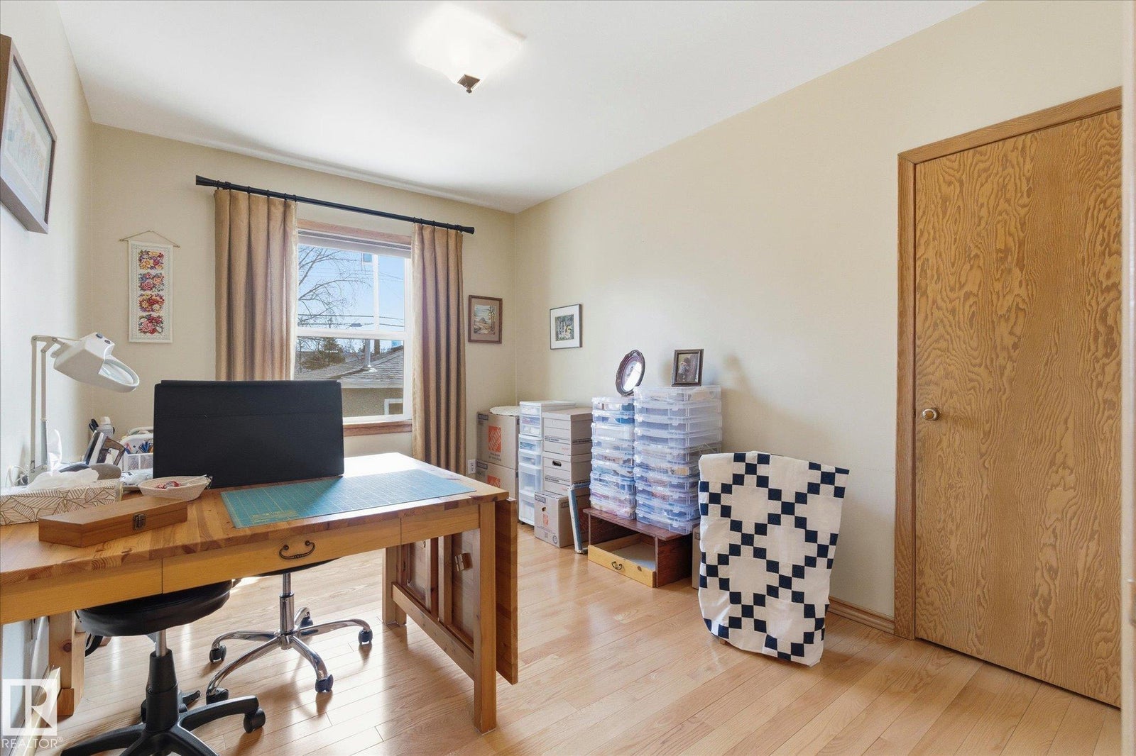 Location Location Location. 1953 built bungalow located in a very popular area of town. 3 bedroom with fully finished basement. Nicely upgraded with oak cabinets, hardwood flooring , upgraded bath, dual zone furnace, shingles (2016) . Updated siding , a/c , metal clad windows (main floor), nice rear patio, poured walks, no ,maintenavce front decking,manicured grounds and even a dog run. Comes with a double detached garage with side shed, alley access and plenty of room for extra parking. All this backing walking/bicycle pathways which will lead to down town. A dog walkers paradise.